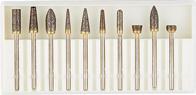For the occasion, I bought myself, for a number of dollars very close to my age, a new set of diamond abrasive burrs for my stone carving. Industrial quality diamonds have become commonplace and inexpensive today. These tools will bring me much more joy than any extravagent jewel.